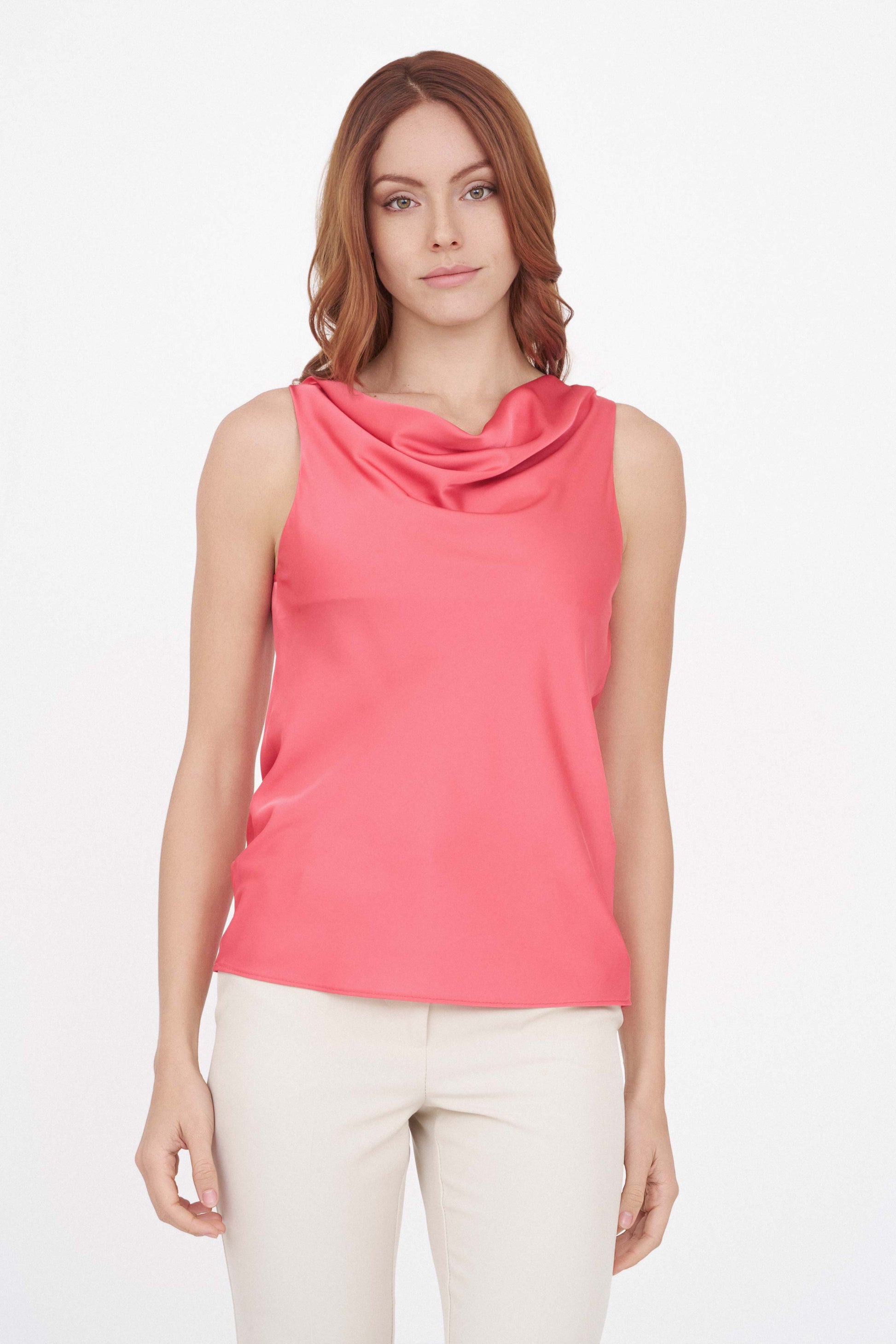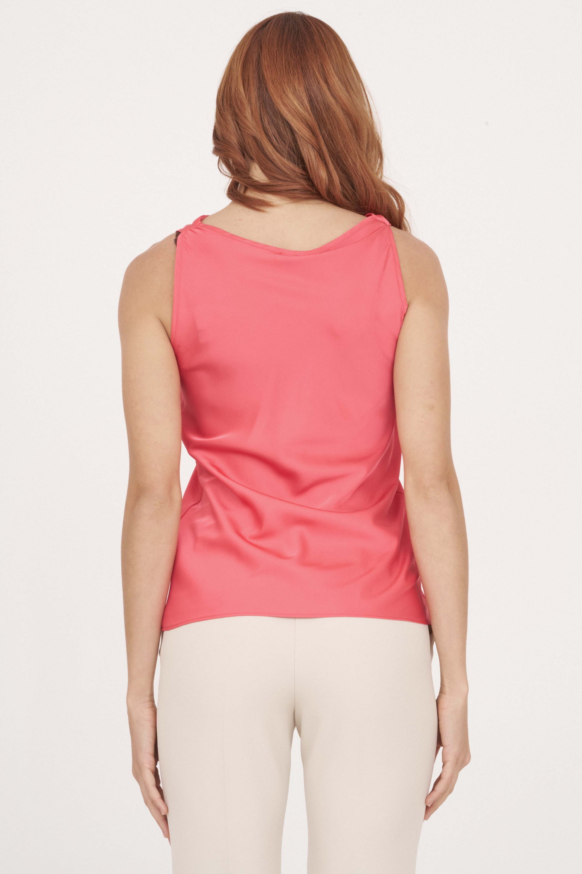 TOP A SCOLLO MORBIDO IN RASO TINTA UNITA
