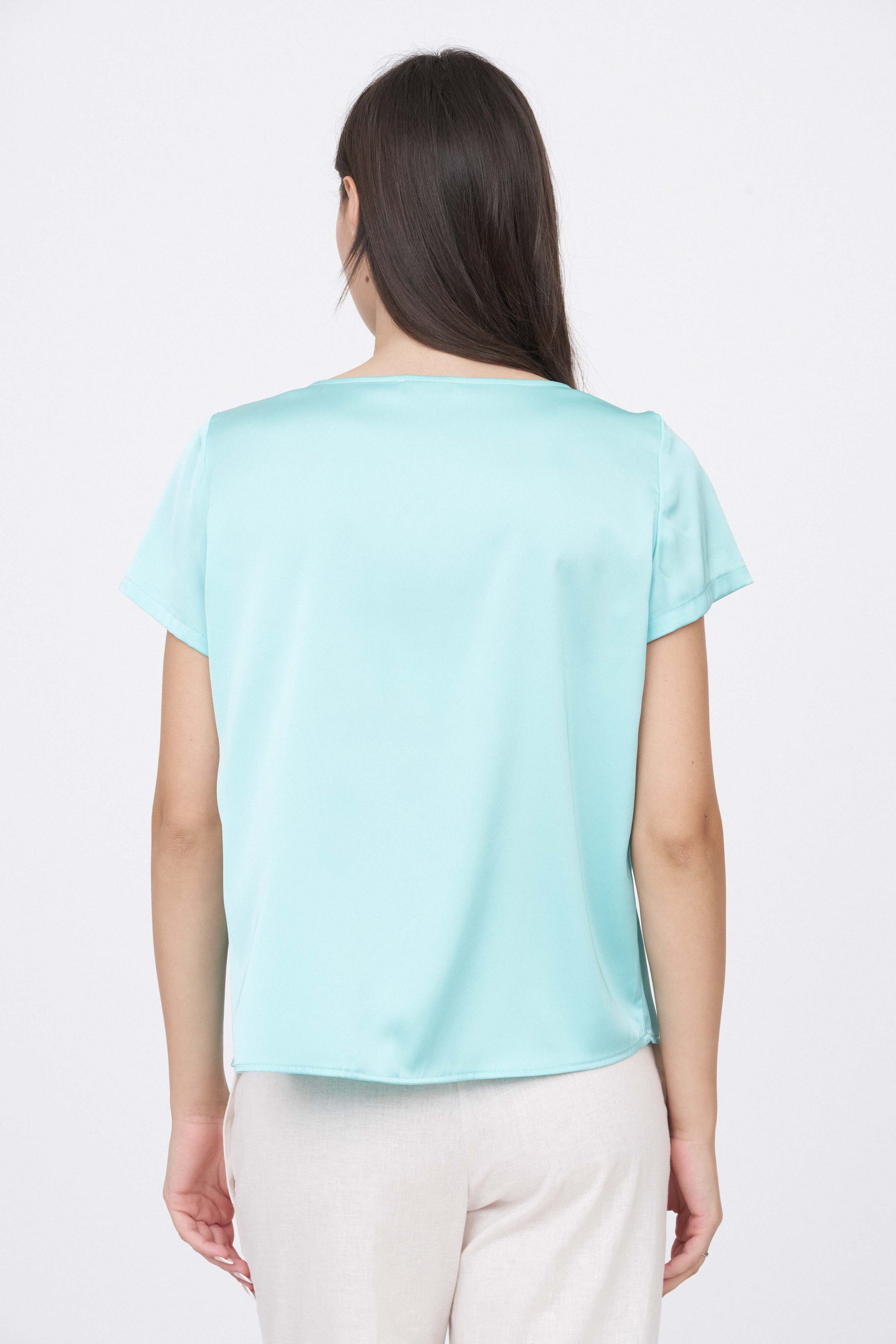 BLUSA MEZZA MANICA IN RASO TINTA UNITA